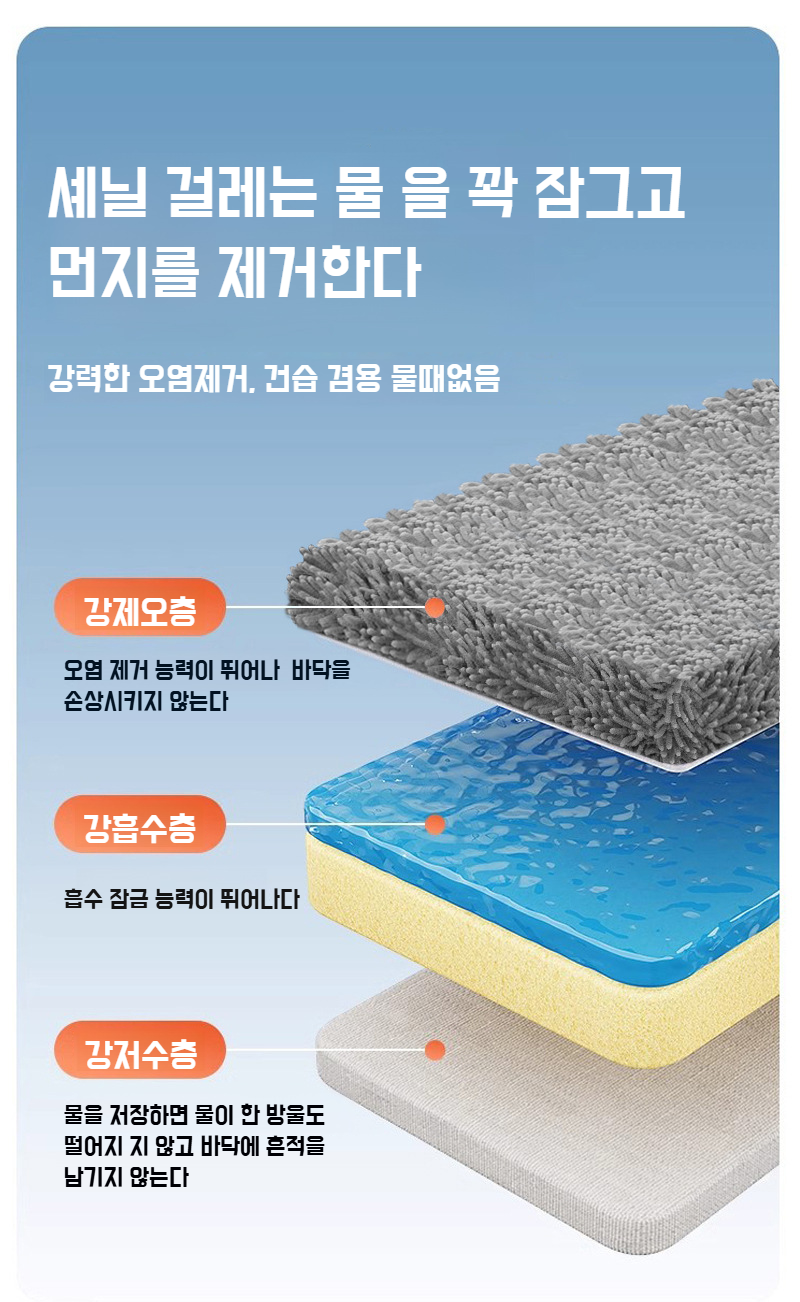 게으름뱅이 손세탁 리퀴드 건습 겸용 플랫 밀대 셰닐 게으름뱅이 가정용 밀대
